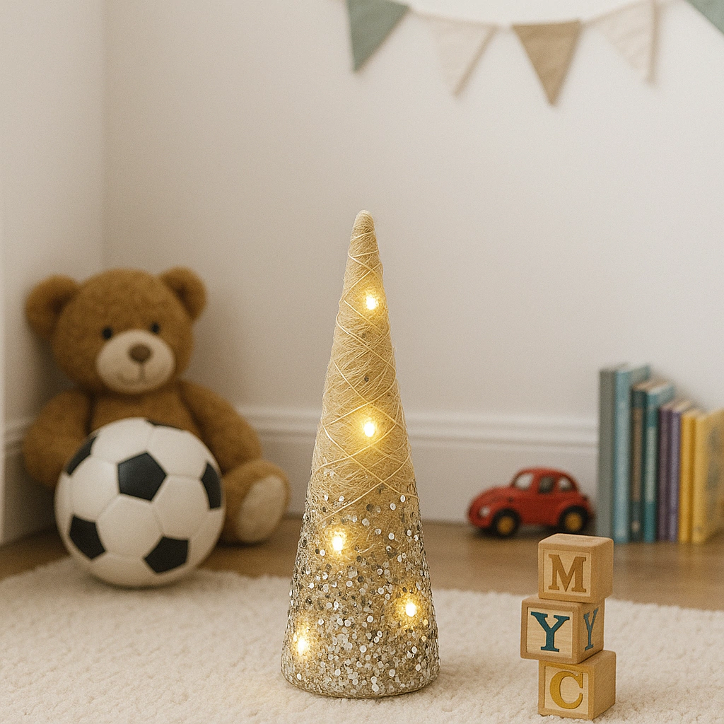 Incluye luces LED que iluminan suavemente y lentejuelas que reflejan la luz creando un efecto brillante y encantador. Ideal para decorar espacios pequeños o para complementar tu decoración navideña con estilo y originalidad.